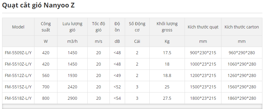 Đặc điểm của dòng quạt cắt gió Nanyoo Z