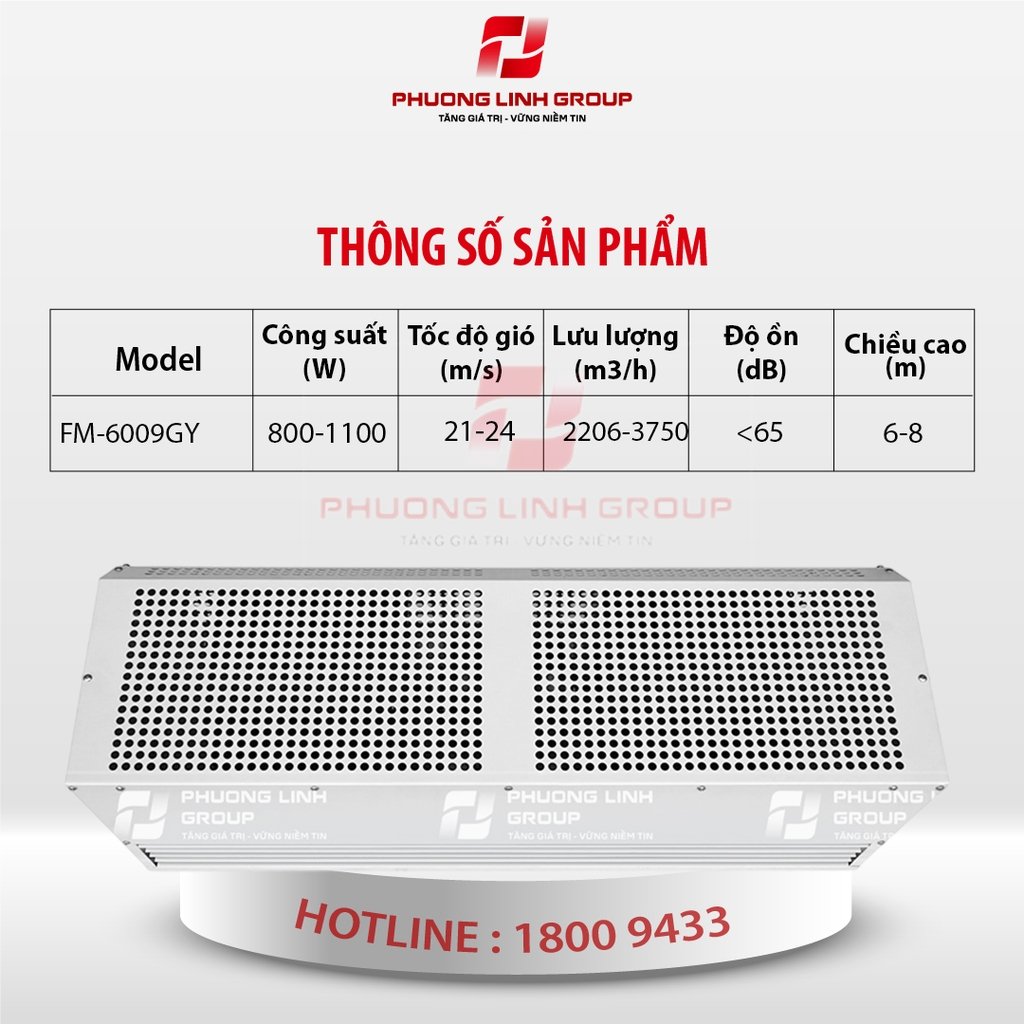 Điện áp 220-240V/50Hz: Công suất 800W; Tốc độ gió 21m/s ; Lưu lượng gió 3500/2059 m3/h; Độ ồn <=63dB