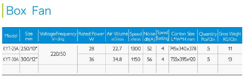 Quạt hộp tản gió 5 cánh cao cấp KYT-30A