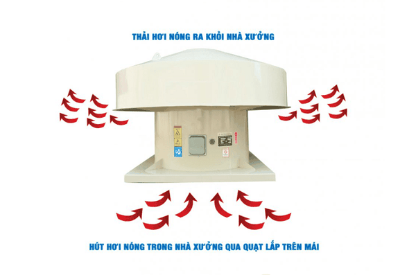 Quạt hút mái nhà xưởng hay còn gọi là quạt hút mái công nghiệp, đây là dòng sản phẩm được thiết kế để lắp trên mái nhà với chức năng là hút dòng khí lơ lửng và không khí nóng độc hại và thải ra ngoài.