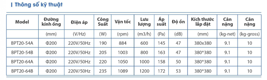 Quạt thông gió gắn trần BPT20-54B là lựa chọn lý tưởng cho những ai đang tìm kiếm giải pháp thông gió hiệu quả, bền bỉ và thẩm mỹ. Với thiết kế hiện đại, công nghệ tiên tiến và khả năng ứng dụng linh hoạt, quạt thông gió nối ống sẽ mang đến không gian sống và làm việc trong lành, thoải mái cho bạn và gia đình.