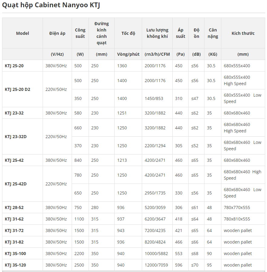 Thông số của quạt thông gió Nanyoo Cabinet