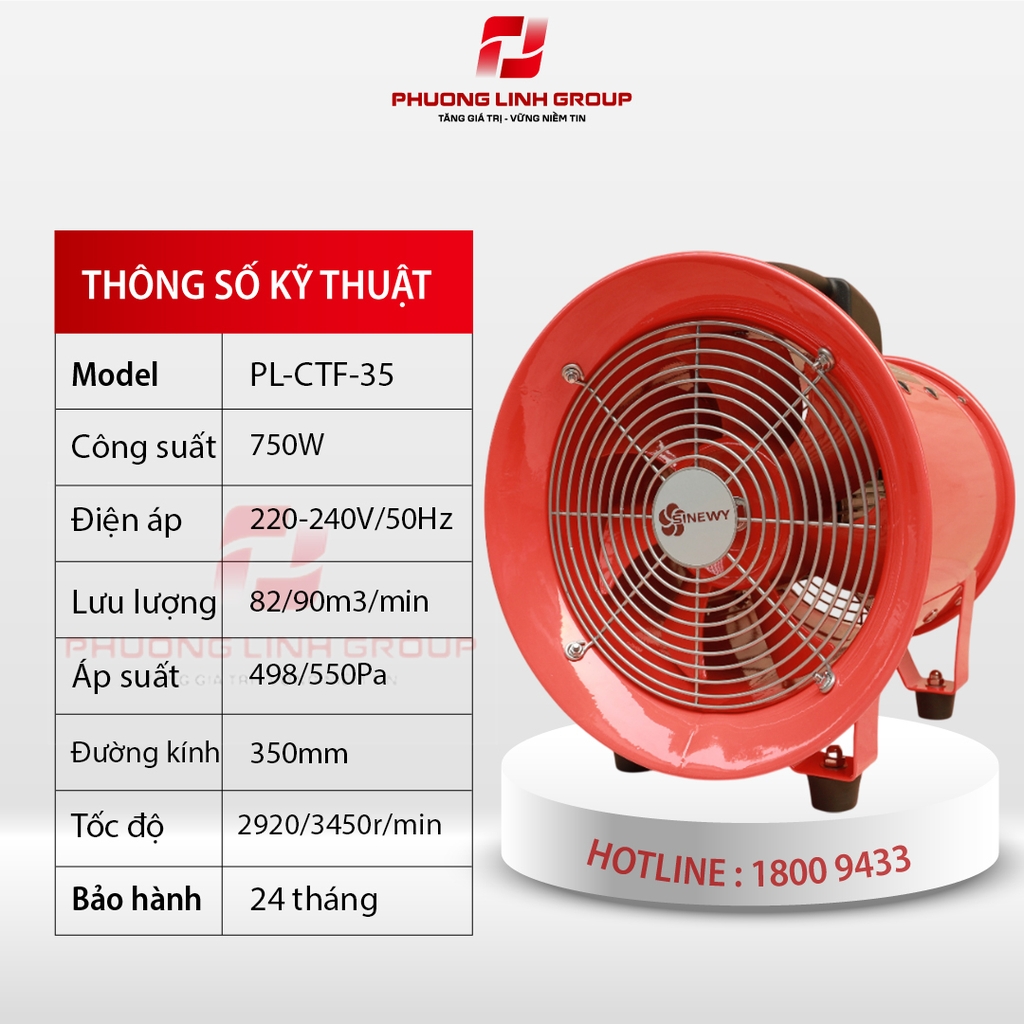Với cấu tạo vỏ hợp kim nhôm cao cấp, quạt thông gió hút mùi CTF-35 có trọng lượng nhẹ và tiếng ồn thấp, đảm bảo hoạt động êm ái mà không làm ảnh hưởng đến môi trường xung quanh. Lưu lượng lớn cùng kết cấu hợp lý giúp quạt có lực hút mạnh mẽ, đáp ứng tốt nhu cầu xả khí cho chữa cháy, xây dựng đường ống hay trong các tình huống lao động áp lực khác.
