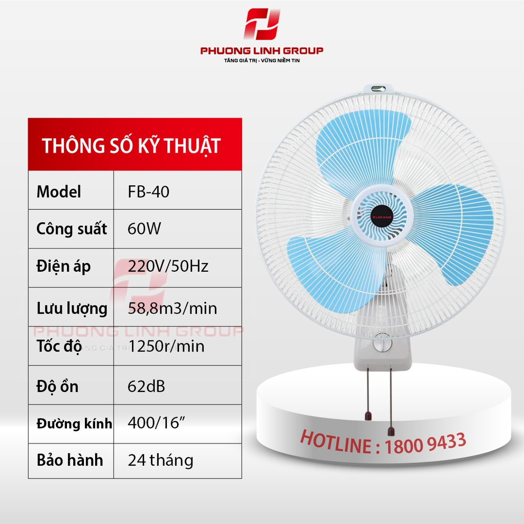 Quạt treo tường chống ồn FB-40B